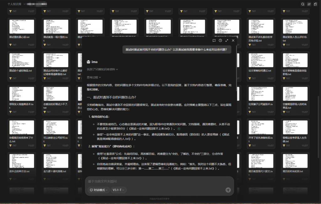 知识库的话也懒得搭建了,直接使用腾讯出品的ima知识库做整理,可以发现还是挺精准的