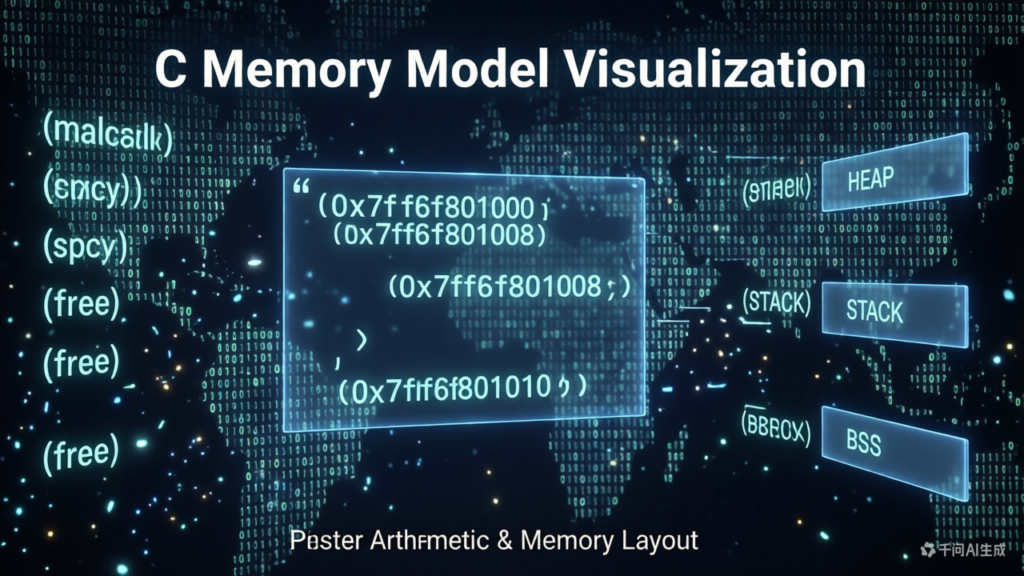 int third = *(ptr + 2); // 访问第三个元素(30)以及令人望而生畏的手动内存管理,实际上在指针上增加偏移值以指向对应内存进行处理: